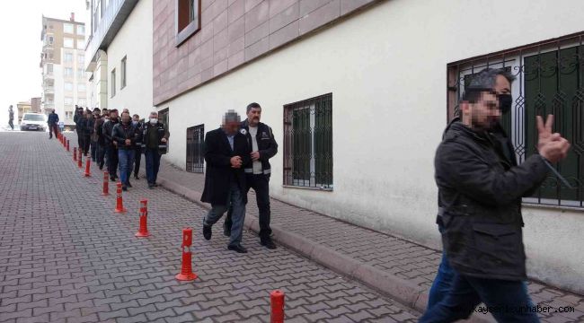 Operasyon da gözaltına alınan 17 kişi Kayseri'de geçirildiği sağlık kontrolünün ardından adliyeye sevk edilirken, 1 kişi de gözaltına alındığı ilde adli mercilere çıkarıldı.
