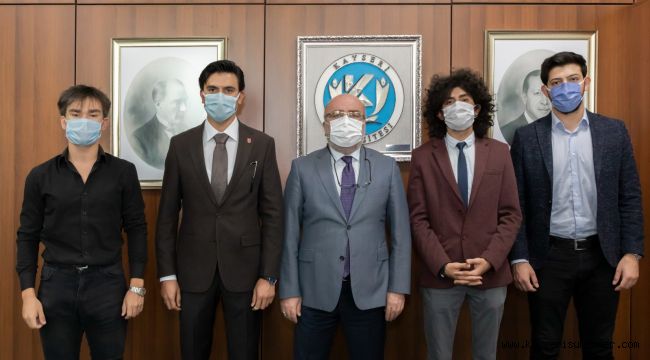 Milli Türk Talebe Birliği (MTTB) Kayseri Şube Başkanı Hakan Pekel, yönetim kurulu üyeleri Ahmet Turan Bayrak, Emir Sami Şakar ve Mahmut Sami Dadaş ile birlikte Kayseri Üniversitesi Rektörü Prof. Dr. Kurtuluş Karamustafa'ya ziyarette bulundu.