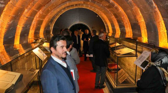 Sergide Hz. Osman'ın okurken şehit edildiği mushafın tıpkıbasımı başta olmak üzere Şeyh Hamdullah Efendi'nin II. Bayezid dönemine ait 1499'da istinsah ettiği eseri ile Ahmet Karahisari'nin Kanunî Sultan Süleyman'ın talebi üzerine ilk 220 sayfasını yazdığı ve daha sonra öğrencisi Hasan Çelebi'nin 1584-87 yıllarında tamamladığı Kur'an'ı Kerim gibi birbirinden kıymetli birçok eserlerin tıpkıbasımları sergileniyor. Ayrıca, hat sanatında kullanılan deri, mürekkep, hokka gibi araç gereçler de sergide yer alıyor.