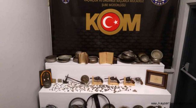 Kayseri'de polis ekipleri tarafından şüpheli bir şahsın ikametine yapılan operasyonda çok sayıda tarihi eser niteliğinde malzeme bulundu.