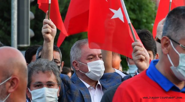 Kayseri OSB Başkanı Tahir Nursaçan, Kartal Şehitliği'nden başlayarak Cumhuriyet Meydanı'na kadar süren demokrasi yürüyüşüne ve Cumhuriyet Meydanı'ndaki programa katıldı.