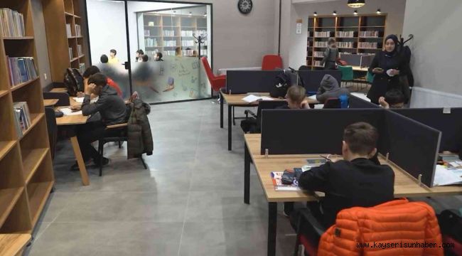 Öğrenciler ara tatil kampını akıl küpü kütüphanesinde yapıyor