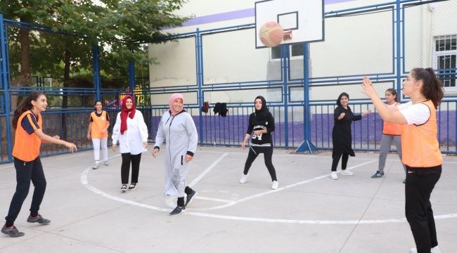Yazar Ortaokulu öğrencileri, velilerine karşı basketbol turnuvasında karşı