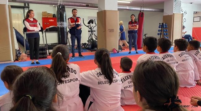 Kayseri İl Jandarma Komutanlığı ekiplerince Taekwondo öğrencilerine 'Jandarma mesleği ve Güvenli İnternet Kullanımı' eğitimi verildi.