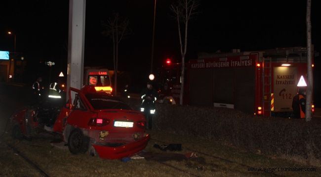 Kayseri'nin Melikgazi ilçesinde tramvay yoluna girerek elektrik direğine çarpan otomobilde bulunan 2 kişi hayatını kaybederken 1 kişi yaralandı.