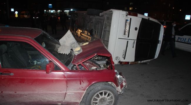Kayseri'nin Melikgazi ilçesinde otomobille çarpışan işçi servisi yan yattı. Kazada 6 kişi yaralandı.