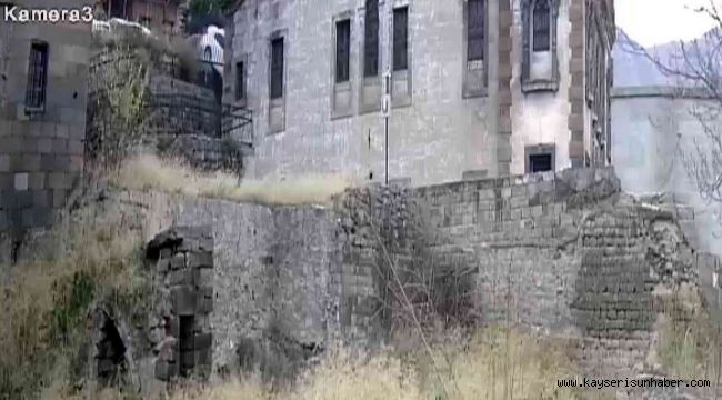 Kayseri'nin Talas ilçesinde 2'si öğretmen 3 kişinin bulunduğu otomobilin, Öğretmenler Günü nedeniyle geldiği kafenin otoparkından caminin bahçesine uçtuğu anlar, güvenlik kamerasına yansıdı.