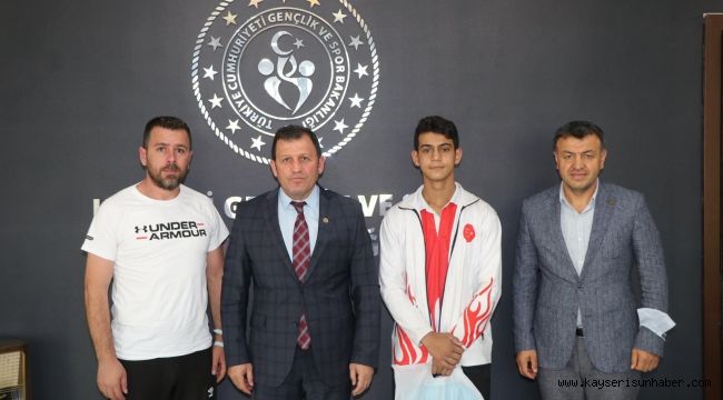 20-27 Ağustos 2021 tarihleri arasında Polanya'da yapılan Yıldızlar ve U15 Avrupa Halter Şampiyonası'nda mücadele eden Kayserili sporcu Özbey Çetin, şampiyona dönüşünde İl Müdürü Ali İhsan Kabakcı'yı makamında ziyaret etti.