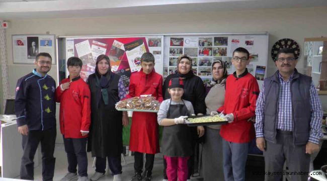 Kayseri'nin Melikgazi ilçesinde bulunan İstiklal Özel Eğitim Meslek Okulu öğrencileri, öğretmenleri ve velileri, Berat Kandili dolayısıyla deprem bölgesindeki vatandaşlara kandil simidi yaptı.