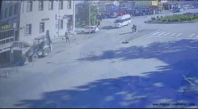 Olayda maddi hasar meydana gelirken, iş makinasının yokuş aşağı gittiği görüntüler de çevrede bulunan bir güvenlik kamerasına yansıdı.
