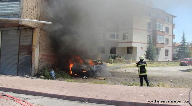 Kayseri'nin Kocasinan ilçesinde park halindeyken yanan otomobil itfaiye ekipleri tarafından söndürüldü.