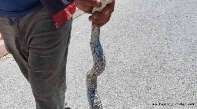 İlçede bulunan Aksu Mesire Alanı'nda temizlik yapan Develi Belediyesi temizlik işçileri, temizlik esnasında 1,5 metre uzunluğunda yılan gördü. Piknik alanındaki ziyaretçilere zarar vermemesi için yılanı eliyle yakalayan temizlik işçisi, daha sonra doğaya bıraktı.