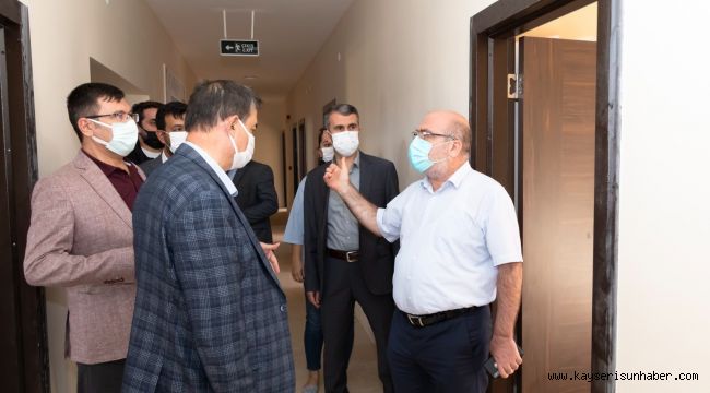 Kayseri Üniversitesi (KAYÜ) Rektörü Prof. Dr. Kurtuluş Karamustafa, KAYÜ Yeşilhisar Fuat Sezgin Kampüsünde incelemelerde bulundu.