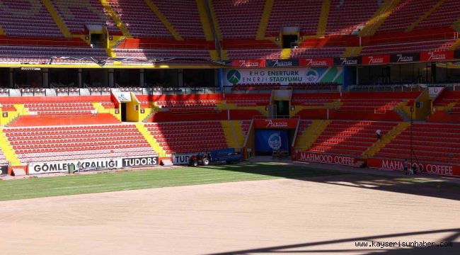 Büyükşehir belediyesi ekiplerince yeni sezon hazırlıkları kapsamında şehrin markası Kayserispor'un maçlarını oynadığı RHG Enertürk Enerji Stadyumu'nda çim serimi işlemlerine başlandı. Çalışmalar kapsamında saha sıyırma işlemleri ile başlanarak mevcut kotun 25 santimetre altına inilen bu işlem bir hafta devam etti. Öte yandan sonrasında ise temiz kum çekim işlemi yapılarak, bu şekilde saha seviyesi 10 santimetre düşürüldü ve lazer tesviye makinesi ile saha beşik çatı formatına getirildi.
