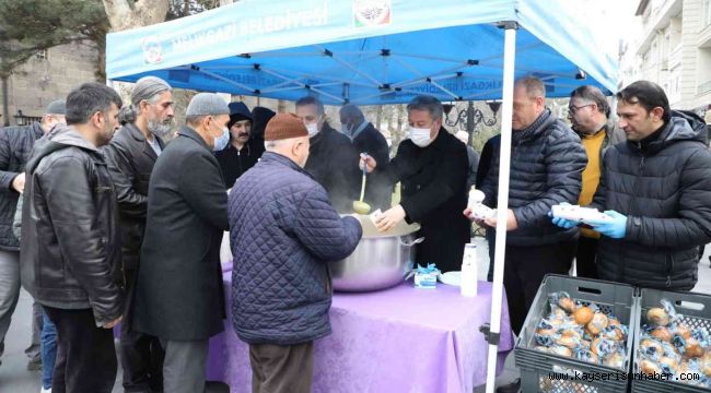 Melikgazi Belediye Başkanı Dr. Mustafa Palancıoğlu, sabah namazı sonrasında Hunat Camisi'nin avlusuna kurulan stantta çorba ikram ettiklerini söyledi.