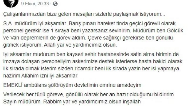 Müdürü Ali Ramazan Benli'ye mesaj atarak taleplerini iletti. Harekatın 3.