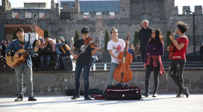 Kayseri Büyükşehir Belediyesi tarafından kente kazandırılan tarihi Kayseri Kalesi Kültür Sanat Merkezi’nin Sanatçılar Sokağı, havaların ısınmasıyla birlikte hareketlenmeye başladı. Sanatçılar Sokağı’nın genç müzisyenleri Kültür Sanat Merkezi’ni gezen vatandaşlara müzik ziyafeti sundu.