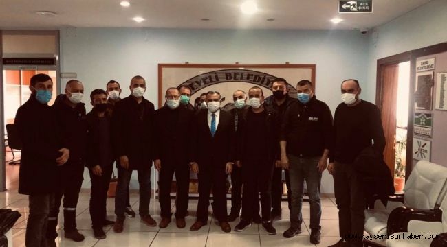Sanayi Sitesi Kooperatifi Başkanı İbrahim Karagöz, Esnaf ve Sanatkarlar Odası Başkanı Mehmet Somuncu ve kooperatif üyeleri ile birlikte Develi Belediye Başkanı Mehmet Cabbar'ı makamında ziyaret ederek yeni yapılacak sanayi sitesi hakkında istişarelerde bulundu.