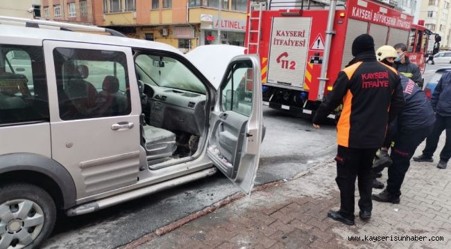 Kayseri'nin Kocasinan ilçesinde seyir halindeyken alev alan hafif ticari araç itfaiye ekipleri tarafından söndürüldü.