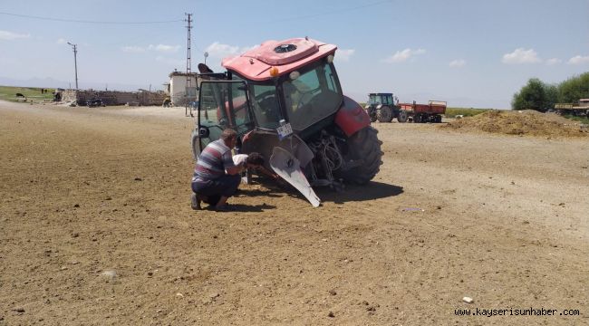 Kayseri'nin Develi ilçesinde seyir halindeki traktörün tekerleği çıktı.