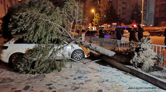 Kayseri'de etkili olan şiddetli rüzgar çatıları uçurdu, ağaçları yerinden söktü. Kentte bazı araçlar, çatılardan kopan ve sökülen ağaçlar nedeniyle hasar gördü.