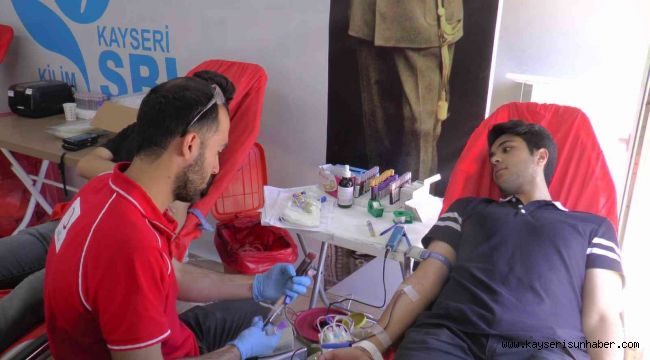 Kayseri'de bulunan bir lisede geleneksel olarak düzenlenen 'Kan Ver Can Ver' etkinliğinde, okul yönetimi ve öğrenciler kan bağışında bulundu.