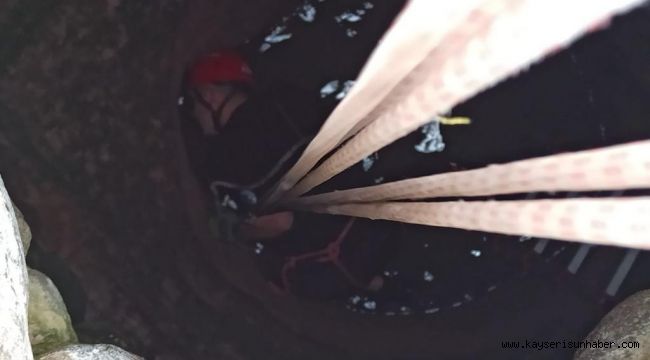 Kayseri'nin İncesu ilçesinde 30 metrelik su kuyusuna düşen keçi, itfaiye ekiplerinin 4 saat süren çalışması sonrası kurtarıldı.