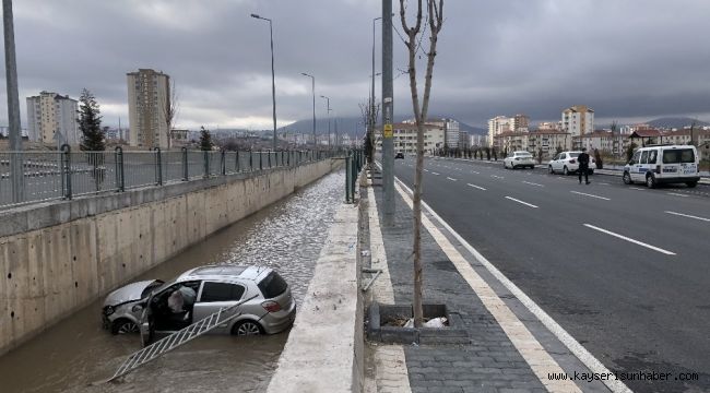 Kayseri'nin Melikgazi ilçesinde sürücüsünün direksiyon hakimiyetini kaybettiği otomobil yol üzerinde bulunan su kanalına uçtu.