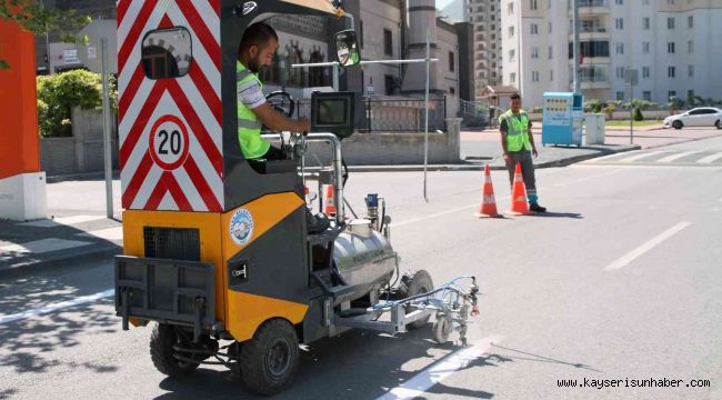 Talas Belediyesi, şehir içi yol çizgi uygulamaları için ergonomik olarak tasarlanan kendinden yürür yol çizgi aracı aldı.