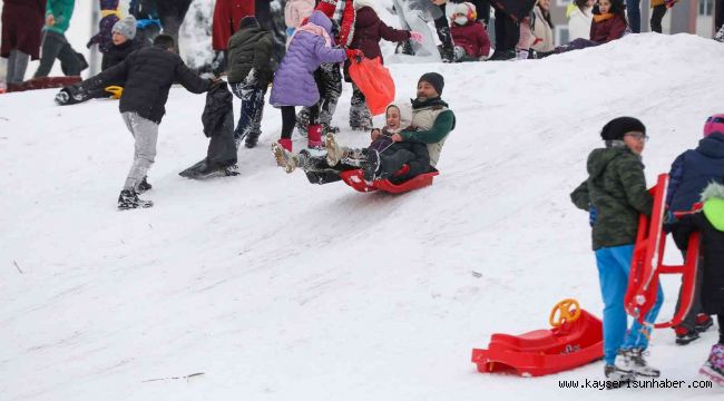 Talas Belediyesi tarafından kayak pistine dönüştürülen Mevlana Mahallesi'ndeki tepe, 7'den 70'e her yaştan Talaslının kayak keyfini doyasıya yaşadığı uğrak yeri oldu.