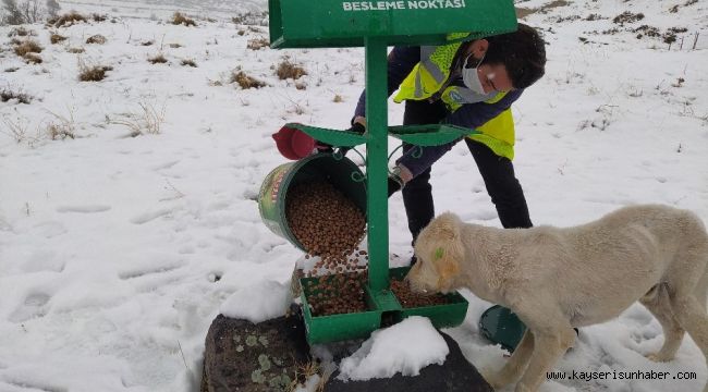 Talas Belediyesi'nin hafta sonları uygulanan sokağa çıkma kısıtlamasında sokak hayvanlarının aç kalmaması için kurduğu özel ekip 2 gün boyunca yemleme yaptı. Ekipler, soğuk ve kar yağışının etkili olduğu günlerde 35 noktaya 150 kilo yiyecek koydu.