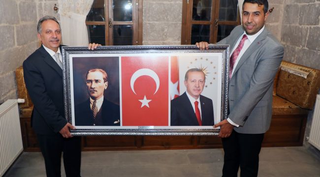 Konuşmasının ardından muhtarlara isimlerinin yazılı olduğu kalem ve ajanda hediye eden Başkan Yalçın, ayrıca Türk Bayrağı, Mustafa Kemal Atatürk ve Cumhurbaşkanı Recep Tayyip Erdoğan’ın birlikte yer aldığı tablo takdim etti.