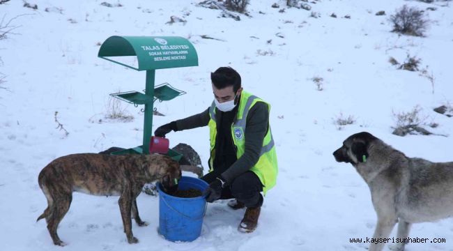 Konuyla ilgili değerlendirmede bulunan Talas Belediye Başkanı Mustafa Yalçın, "Hayvan dostlarımızın daima yanında oluyoruz. Yaz, kış dört mevsim boyunca onların yiyecek bulmaları için daha önceden ilçe sınırları içinde belirlediğimiz noktalara hayvan yemleri ve yiyecek maddeleri bırakıyoruz" dedi.