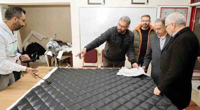 Depremin meydana geldiği andan itibaren çalışmalarını aralıksız sürdüren Talas Belediyesi, bölgedeki çadırlara yerleştirilen depremzedelerin geceyi daha sıcak geçirmeleri için uyku tulumu üretimine ağırlık verdi. Talas Belediyesi Fatma Bacı Kadın Kültür Merkezi'nin yanı sıra Talas Halk Eğitim Merkezi ve Talas Resul Erdal Aydemir Halk Eğitim Merkezinde uyku tulumu üreten kursiyerler ve gönüllüler, depremzedelerin daha sıcak bir ortama kavuşmaları için çaba sarf ediyor. Talas Belediye Başkanı Mustafa Yalçın ve Talas Kaymakamı Yaşar Dönmez de kurs merkezlerini ziyaret ederek yapılan çalışmalarla ilgili yetkililerden bilgiler aldı. Üretilen uyku tulumlarını inceleyen Başkan Yalçın ve Kaymakam Dönmez, gece soğuğuna dayanıklı tulumlara tam not verdi.