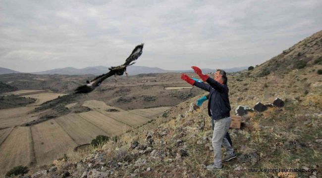 Kayseri'de vatandaşlar tarafından Erciyes Dağı civarında yaralı olarak bulunan ve Kayseri Doğa Koruma ve Milli Parklar Müdürlüğü ekiplerine teslim edilen kaya kartalı ve mısır akbabası, gerekli bakım ve tedavilerinin ardından doğaya salıverildi.