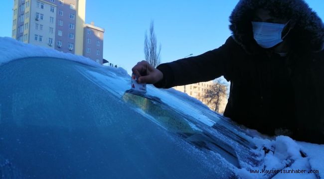 Sabah saatlerinde termometrelerin eksi 11'i gösterdiği Kayseri'de, arabaların camları ve kaldırımlar buz tuttu.