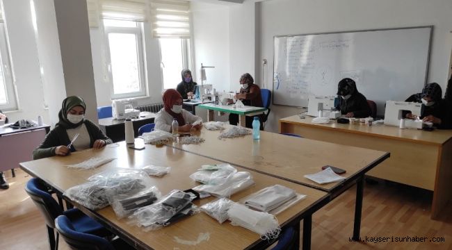 Tomarza İlçesinde İş-Kur desteği ile Halk Eğitim Merkezi sınıflarında Tomarzalı 20 kadın, günlük bin adet maske üretiyor. Üretilen maske ise okullara, resmi kurumlar başta olmak üzere kimi zamanda Tomarzalılara ücretsiz dağıtılıyor.