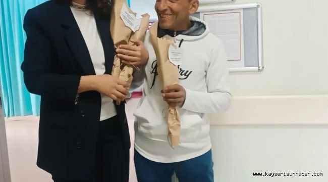 Tomarza Yaşar Karayel Devlet Hastanesi yönetimi, Hasta Hakları Günü dolayısıyla hastalara broşür dağıtarak çiçek hediye etti.