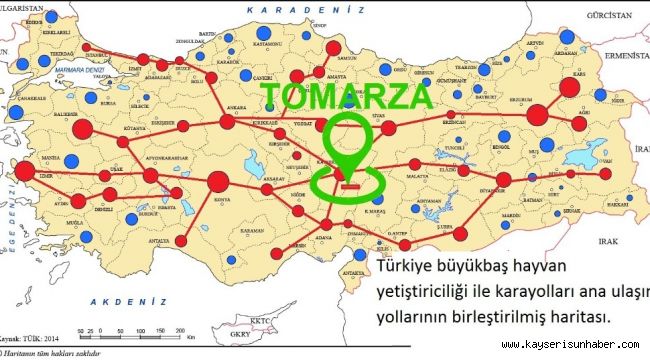 Gürbüz, "Tomarza konumu itibariyle bölge canlı hayvan pazarı olmaya en uygun noktada, ülkenin doğu batı, kuzey ve güney noktalarına hemen hemen eşit mesafededir. Bu durumu izah etmek için karayollarının ana ulaşım ağları ile büyük çaplı canlı hayvan yetiştiren illerin haritasını kırmızı renkle birleştirdim. Değerli Tomarzalı hemşerilerimizde bu haritaya bakınca muhtemelen bana hak vereceklerdir" diye konuştu.