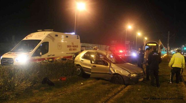 Kayseri'nin Kocasinan ilçesinde direksiyon hakimiyetini kaybeden otomobil, tramvay yoluna girerek takla attı. Kazada 1 kişi yaralandı.