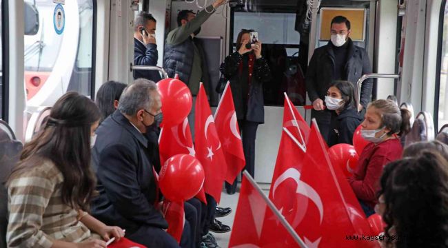 Kayseri'nin Talas Belediyesi, Cumhuriyet Bayramı kutlamalarında farklı bir programa daha imza atarak öğrencilerle tramvay içinde İstiklal Marşı okuma etkinliği düzenledi.