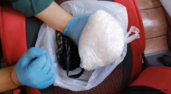 Kayseri İl Emniyet Müdürlüğü Narkotik Suçlarla Mücadele Şube Müdürlüğü ekiplerince yapılan çalışmalarda, şehre uyuşturucu madde getireceği bilgisi alınan şahıs, yolcu otobüsünde uyuşturucuyla birlikte yakalandı.