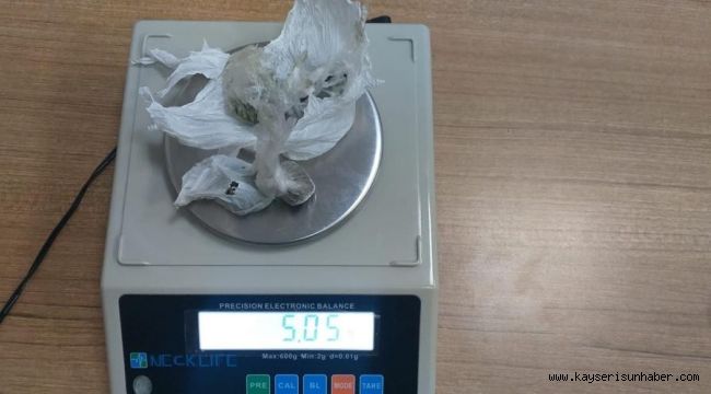 Kayseri İl Emniyet Müdürlüğü Asayiş Şube Müdürlüğü Güven Timleri Büro Amirliği ekipleri, Melikgazi ilçesinde bir okulun önünde park halinde bulunan araç içerisindeki O.T.'nin kendilerini görünce aracın altına poşet attığını fark etti. Ekipler tarafından kontrol edilen poşet içerisinde toplam 5 parça uyuşturucu madde bulundu.