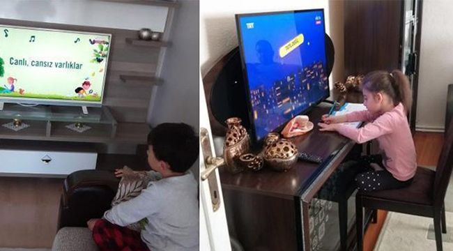 Koronavirüs nedeniyle okulların tatil edilmesinin ardından uzaktan eğitim bugün sabah başladı. Öğrenciler ilk ders için televizyon karşısına geçti.