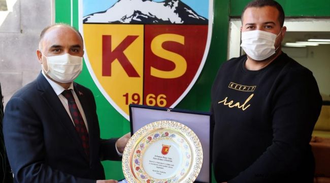 Kayserispor Kapalı Kale Taraftarlar Derneği Başkanı Ahmet Dirgenali de Vali Şehmus Günaydın'a Kayserispora vermiş olduğu büyük desteklerden ve ziyaretinden dolayı teşekkür ederek, günün anısına plaket takdim etti.