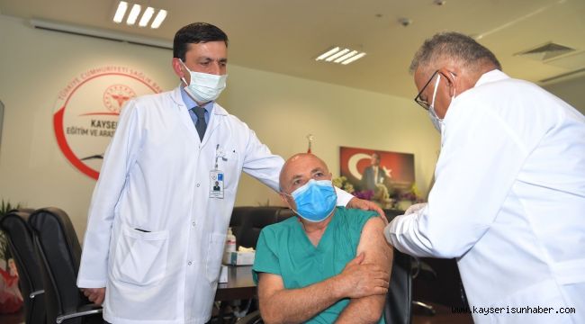 Büyükkılıç daha sonra ziyaretini takip eden İhlas Haber Ajansı (İHA) Muhabiri Ali Göç'ün de 3. doz aşısını yaptı.
