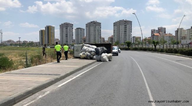 Kayseri'nin Kocasinan ilçesinde elyaf yüklü kamyonet virajı alamadığı için yol kenarına devrildi. Meydana gelen kazada 1 kişi yaralandı.