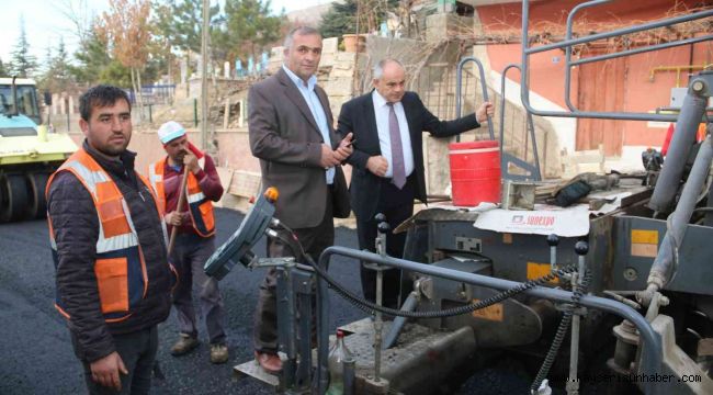 Kayseri'nin Yahyalı ilçesinde belediye tarafından yürütülen asfaltlama çalışmaları aralıksız devam ediyor.