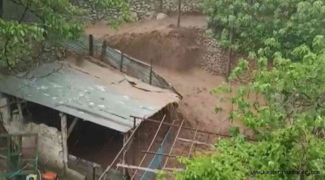 Kayseri'nin Yahyalı ilçesinde etkili olan sağanak yağış sele neden oldu.