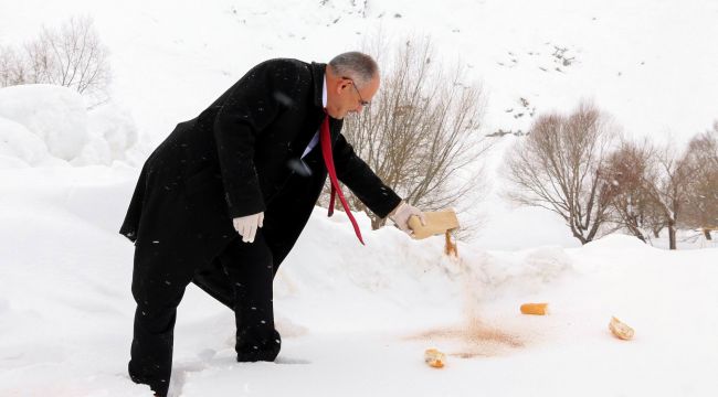 Kayseri’nin Yahyalı ilçesinde belediye tarafından kırsal mahallelerde ve dağlık kesimlerde etkili olan kar yağışının ardından doğada yaşayan hayvanların aç kalmaması için yem bırakıldı.